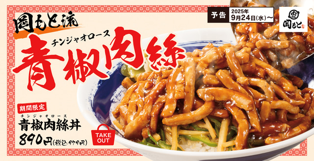 とんかつ専門店「かつや」などを展開するアークランドサービスホールディングス株式会社の子会社、株式会社トビラダイニングが運営する“カツ丼でも牛丼でも親子丼でもない。新しい肉丼、肉めし専門店”「肉めし岡もと」が、食欲の秋にふさわしい、ボリュームと食べ応えを兼ね備えた「青椒肉絲丼」「青椒肉絲定食」を2025年9月24日(水)から期間限定で販売します。