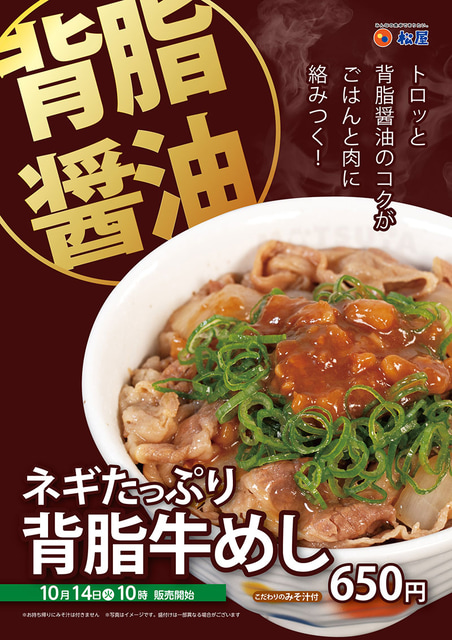 トロっと背脂醤油のコクとたっぷりのネギが肉とご飯に絡みつく! 松屋が「ネギたっぷり背脂牛めし」を本日14日(火)からテスト販売