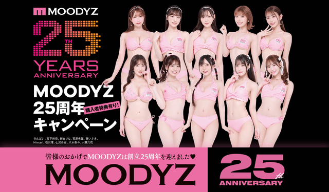 デジタルコマースが展開中のFANZA動画(旧DMM.R18)が、「MOODYZ創立25周年キャンペーン」を開催しています。