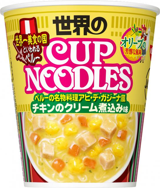 “世界一の美食の国”ペルーの名物料理「アヒ・デ・ガジーナ」がカップヌードルに! 「カップヌードル ペルー式チキンのクリーム煮込み味」が発売~チキンの旨味、黄色唐辛子とオリーブの風味をきかせたエキゾチックな味わい!