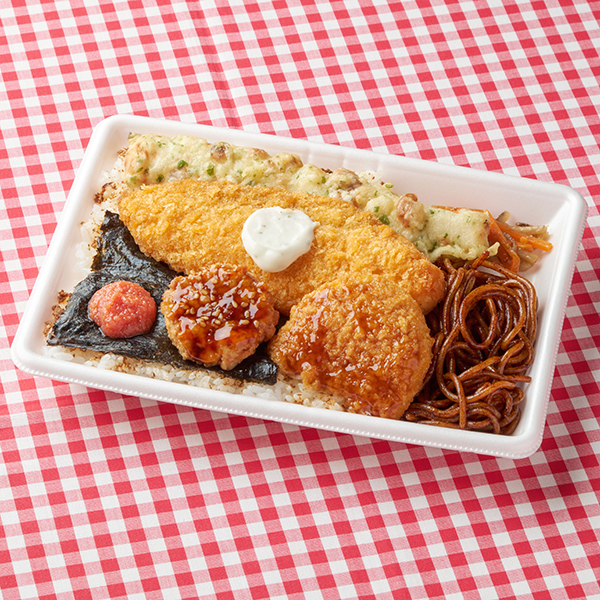 白身魚フライ・明太子・ちくわ磯辺天・コロッケ・つくねなどを盛り合わせた842kcalの海苔弁当が税込599円! ファミリーマートが「明太海苔弁当」を発売