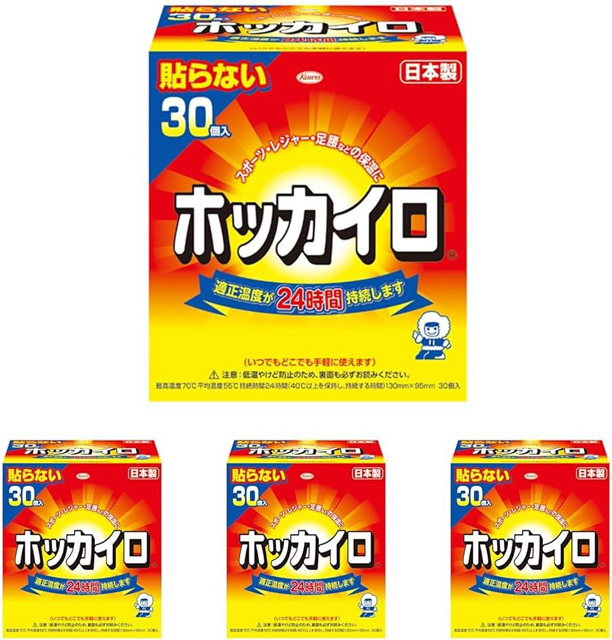 Amazon、40℃以上の適正温度を約24時間持続する「ホッカイロ 貼らないタイプ レギュラー 30個入×4」を販売中 “いつでも手軽にあたたかさを”