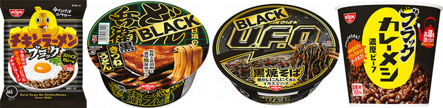 「チキンラーメン」「どん兵衛」「U.F.O.」「カレーメシ」が真っ黒に! 真っ黒な見た目とパンチのある味わいの「ブラック」シリーズ4品が本日10日(月)発売