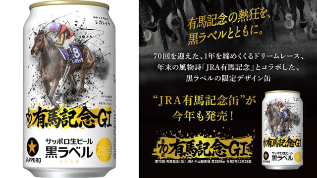 2025年12月28日(日)に行なわれる有馬記念(GI)(第70回グランプリ)を記念し、数量限定でサッポロ生ビール黒ラベル「JRA有馬記念缶(レガレイラ号)」が11月11日(火)に発売されます。Amazonでも注文を受け付けており、販売価格は350ml×24本で税込5,400円です。