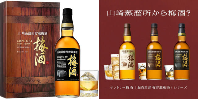 Amazon限定で山崎蒸溜所で梅酒樽後熟仕上げの梅酒に梅酒樽後熟グレーンウイスキーと香り高いモルトウイスキーを贅沢にブレンドした「サントリー梅酒 山崎蒸溜所貯蔵梅酒 リッチアンバー」の樽デザインギフトセットを販売中