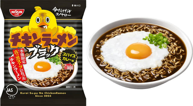 別添の粉末スープを入れるとラーメンスープが真っ黒に! 19種類のスパイスがきいたスパイスカレー味「ブラックチキンラーメン」がAmazonでも販売 『今だけだぞコノヤロー』