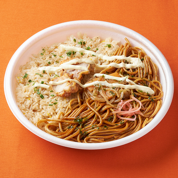 「てんこ盛!炒飯&ソース焼きそば」は、人気の炒飯と焼そばを合い盛りにしたボリュームたっぷりのお弁当です。炒飯は背脂を使用した旨みある味わいで、焼そばはかつお節を入れた風味の良い仕立てとなっています。