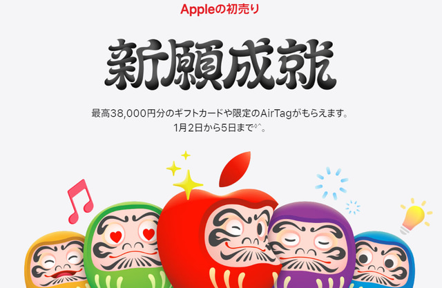 Appleが本日2日(金)から“新願成就”「初売り」開催! 対象iPhoneやMacなど購入で最高38,000円分Gift Cardや限定デザインAirTagがもらえる