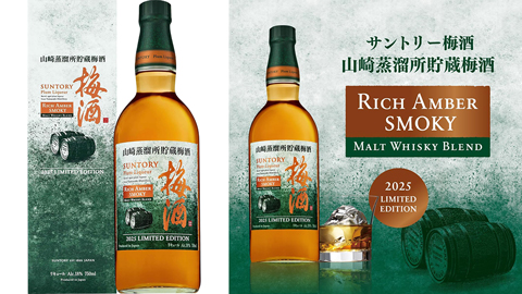 サントリー梅酒「リッチアンバー」から、ブランド初の限定品「サントリー梅酒(山崎蒸溜所貯蔵梅酒)リッチアンバースモーキー」が登場。山崎蒸溜所にて、スモーキータイプのウイスキーを熟成した樽で3年間貯蔵した特別な梅酒に、梅酒樽で後熟したグレーンウイスキーと、香り高いモルトウイスキーをブレンド。芳醇な梅酒の味わいに、ほのかなスモーキーさが重なり合い、奥行きのある香りと、ウイスキー由来の長い余韻を愉しめるとしています。
