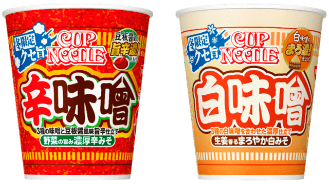「カップヌードル」から冬限定の個性豊かな2つの味噌が登場! “旨辛濃”「カップヌードル 辛味噌」、“まろ濃”「カップヌードル 白味噌」が本日12日(月)発売~寒い季節は濃厚な“三味噌トリオ”を食べ比べ!
