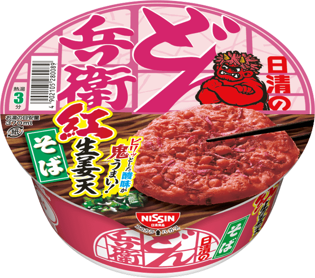 紅生姜天ぷらのピリッとした辛味と酸味がたまらない、節分に恵方巻と一緒に食べたい期間限定のどん兵衛そばとなっています。同社では「真っ赤な“紅生姜天”を食べて赤鬼を退治し、そばをすすれば、節分はバッチリ!」としています。