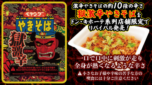 「ペヤング激辛」の約10倍辛い、あの「獄激辛」が帰ってきた! 「ペヤング 獄激辛やきそば」がドン・キホーテ系列店舗限定でリバイバル販売~「一口で口中に刺激が走り、全身が熱くなるような辛さ」