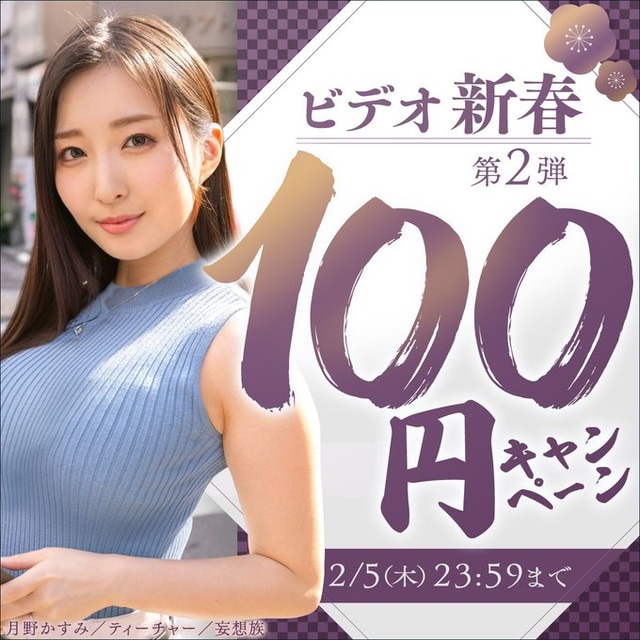 VR作品1タイトルを含むビデオ10タイトルが各税込100円! 全部買っても税込1,000円! 「FANZA動画」が「ビデオ新春100円キャンペーン」第2弾を開催中~キャンペーンガールは月野かすみ