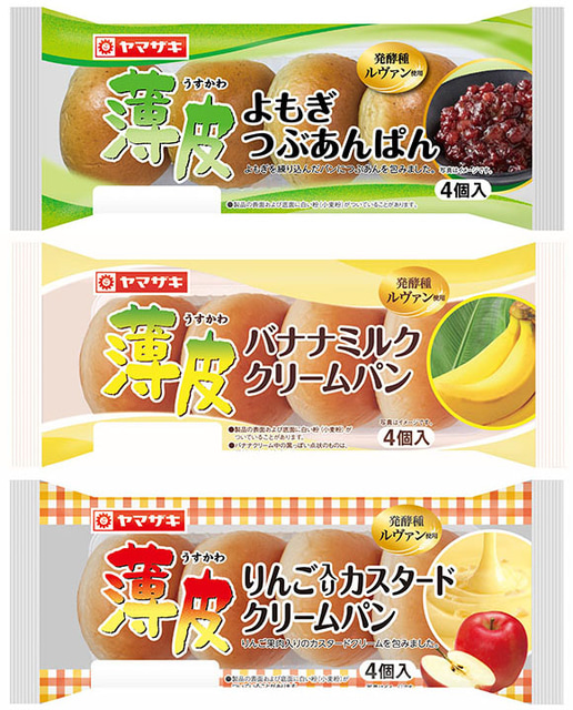 山崎製パンの「薄皮シリーズ」2月の新商品は「薄皮よもぎつぶあんぱん」、「薄皮バナナミルククリーム」、「薄皮りんご入りカスタードクリームパン」が登場