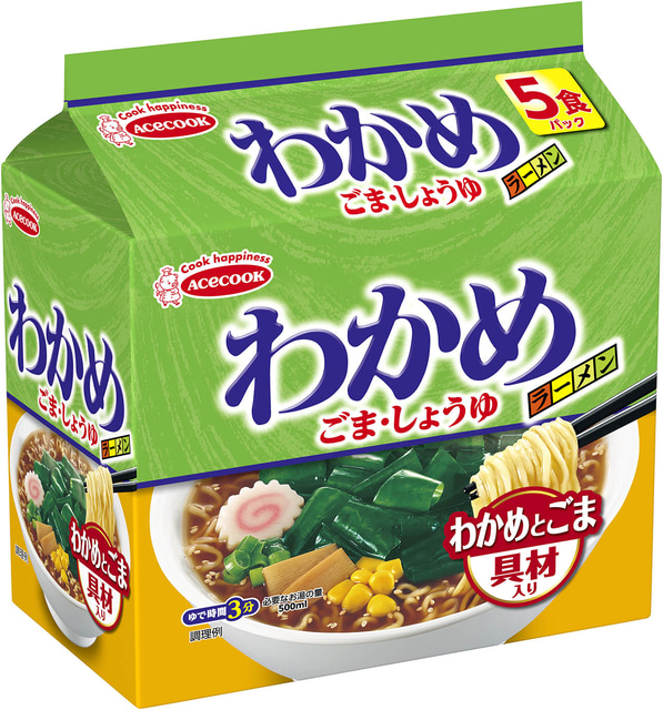 あの“わかめラーメン”のおいしさを袋めんで! わかめ、焙煎ごまのかやく入り! エースコックが「(袋)わかめラーメン ごま・しょうゆ 5食パック」を本日23日(月)発売~わかめ20%増量キャンペーンも!