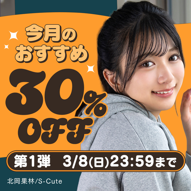 「今月のおすすめ 30%OFFキャンペーン 第1弾」では2026年3月8日(日)朝9:59まで、334タイトルが30%OFFで販売中です。キャンペーンガールは北岡果林さん。