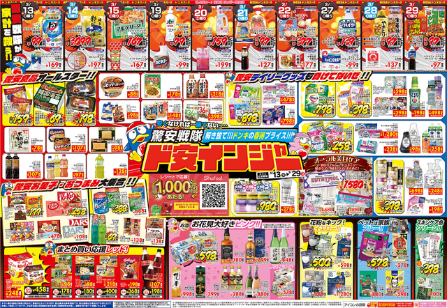 ドン・キホーテが、家計を救う「驚安戦隊ド安インジャー」チラシを公開しました。チラシ広告期間は2026年3月13日(金)~3月29日(日)。