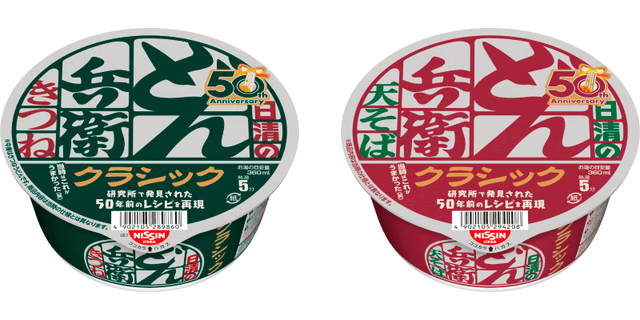 研究所で発見された50年前の「どん兵衛」レシピをもとに発売当時の味を再現! 「日清のどん兵衛 きつねうどん クラシック(東/西)/天ぷらそば クラシック」が発売~「当時はこれがうまかった(笑)」