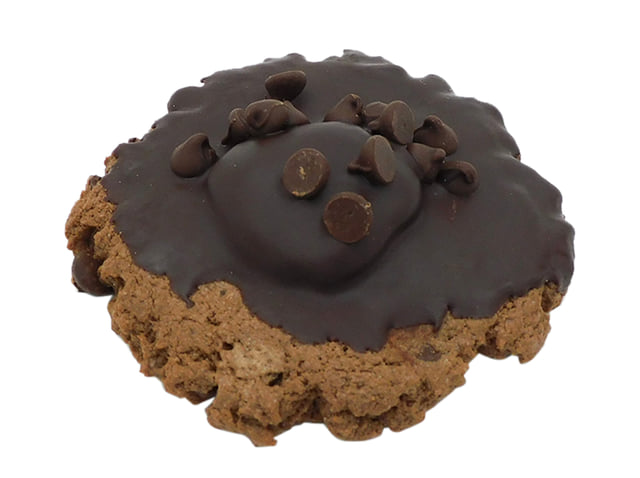 「チョコパキッ もち入りクッキー」は、割ると中からもちが出てくる新感覚のクッキー。パキッと食感のチョコとサクサクのクッキー、もちもちの羽二重餅の3種の食感を楽しめるスイーツです。熱量は284kcal。たんぱく質 4.0g、脂質 13.9g、炭水化物 36.6g(糖質 34.9g、食物繊維 1.7g)、食塩相当量 0.29g。