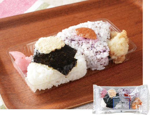 シーチキンマヨ×梅しそごはんのおにぎり2個に鶏唐揚と梅しそ大根を添えて税込308円! ローソンが「おにぎり2個セット(シーチキンマヨネーズ・梅しそ)」を発売