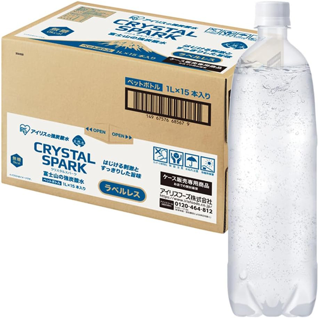 Amazon.co.jpは2026年3月27日(金)現在、アイリスオーヤマの強炭酸水「富士山の強炭酸水 CRYSTAL SPARK プレーン ラベルレス 1000ml×15本」を税込1,264円で販売しています。