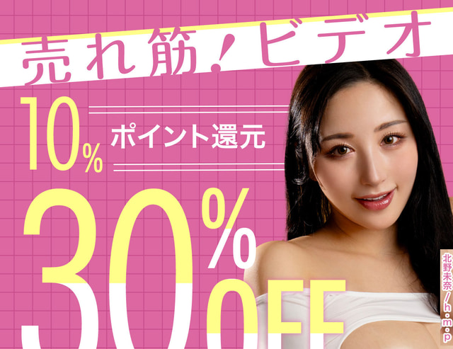 「売れ筋!ビデオ30%OFF 第2弾」では2026年3月31日(火)23:59まで、VR作品108タイトルを含む333作品が30%OFF、10%ポイント還元で販売中です。キャンペーンガールは北野未奈さん。