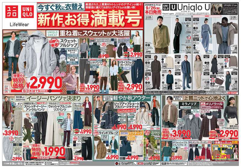 買い忘れはない? ユニクロが本日2日(木)まで特別価格! 男女兼用「スウェットフルジップパーカ」税込2,990円、「ドライスウェットカーブパンツ」税込2,990円、「エアリズム ボクサーブリーフ」税込790円