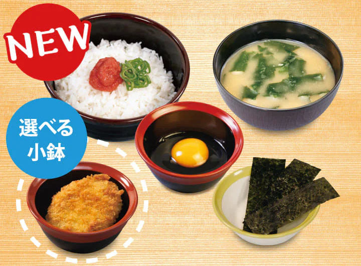 ご飯に明太子とネギをのせて生卵、みそ汁、海苔がついて税込380円! +税込40円でコロッケなど選べる小鉢付き! とんかつ専門店「松のや」の朝食メニューに「明太ごはん定食」が登場