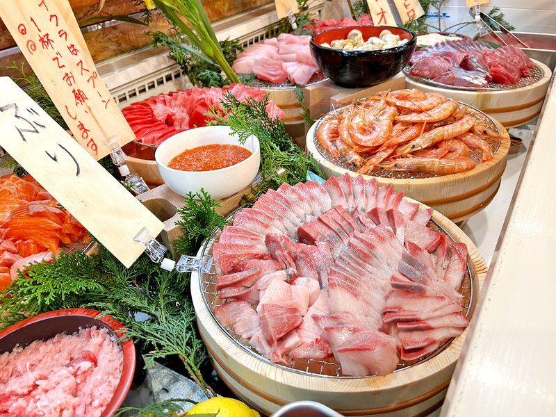 税込2,750円で8種類以上のお刺身やサラダ、惣菜、カレー、フルーツ、デザートなども食べ放題! 白飯や酢飯で自分好みの海鮮丼も作れる! 「漁港食堂 秦野店」がオープン
