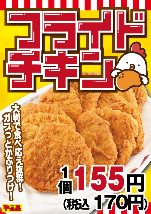 “ガブっとかぶりつけ”大判で食べ応え抜群で1個税込170円! 大衆食堂「半田屋」が「フライドチキン」を本日22日(水)から1週間限定販売