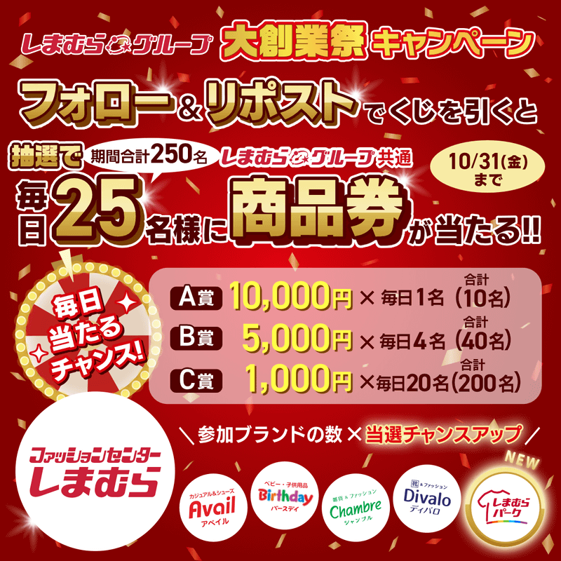 「しまむらグループ大創業祭」が本日22日(水)から開催! 着圧ソックスや、クルーソックス5足組が各税込330円! 中綿ベストが税込1,650円など大創業祭特価品や新作商品が大集合