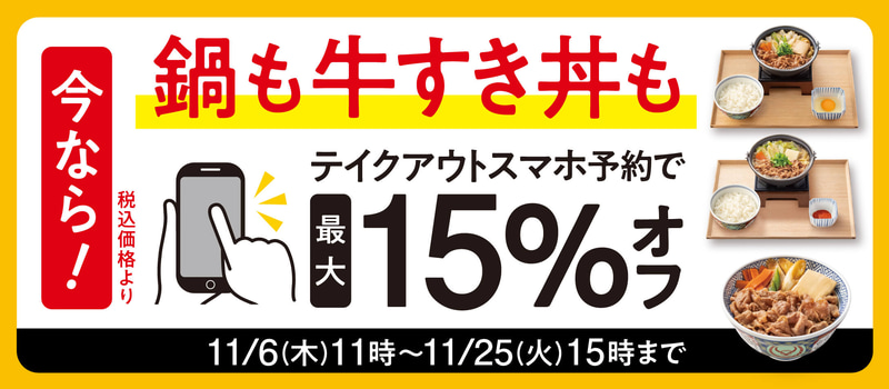 吉野家の「牛すき鍋膳」など冬の人気商品が10%OFF、テイクアウトスマホ予約なら15%OFF! 「牛すき祭」が本日6日(木)から開催