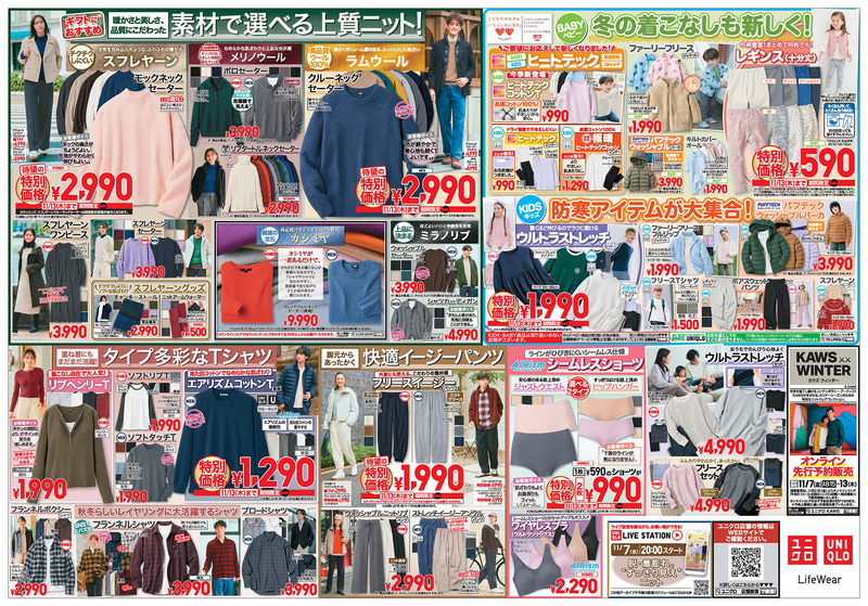 「フリースジャケット」税込1,990円、「ファーリーフリースフルジップジャケット」税込1,990円、「シームレスショーツ」2枚で税込990円などの特別価格! ユニクロが「本格的な寒さに備えて!」チラシを本日7日(金)公開
