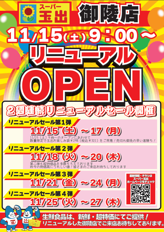大根1本税込105円、惣菜「たこ焼き8コ入」税込149円、税込321円の「お楽しみ袋」も! 本格寿司も登場! 年中無休・24時間営業「スーパー玉出」御陵店が“地域一の安さと生鮮強化”両立のリニューアルオープン
