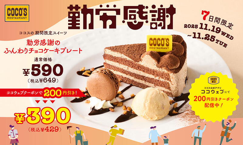 「自分にご褒美あげませんか?」 ココスの「勤労感謝のふんわりチョコケーキプレート」がクーポンで200円引! 甘いものが食べたくなるこの季節にぴったりのチョコ尽くしのプレート