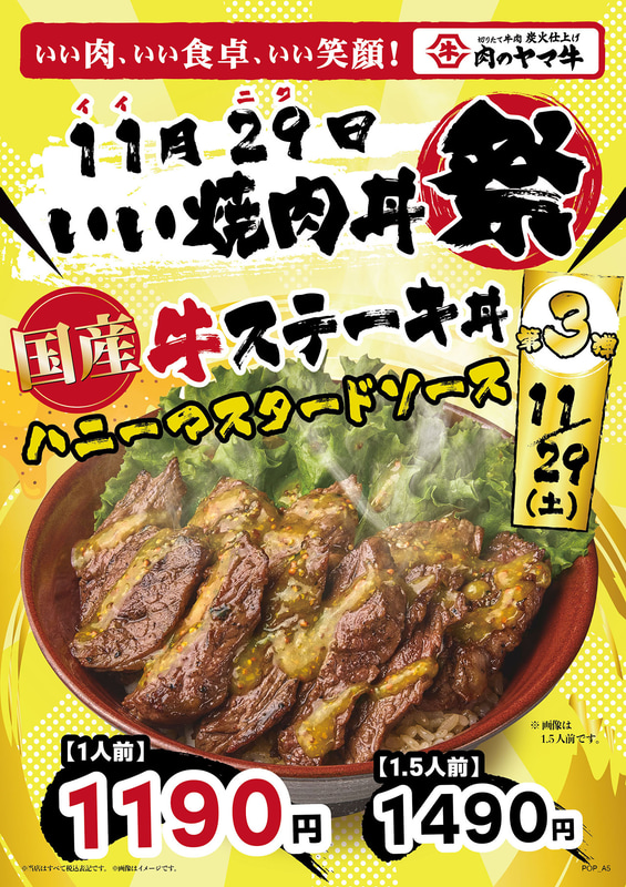 切りたて、焼きたての香ばしい「国産牛ステーキ丼」にニンニクのパンチが効いた“ハニーマスタードソース”をかけて税込1,190円! 丸亀製麺と同グループの「肉のヤマ牛」が本日29日(土)限定販売
