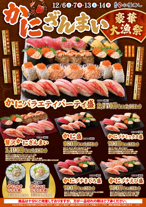 • かに好きに朗報! 本ずわいがに2貫+6貫で税込853円! 小僧寿しが本ずわいがに、紅ずわいがにを使った「かにざんまい!豪華大漁祭」を本日6(土)から開催