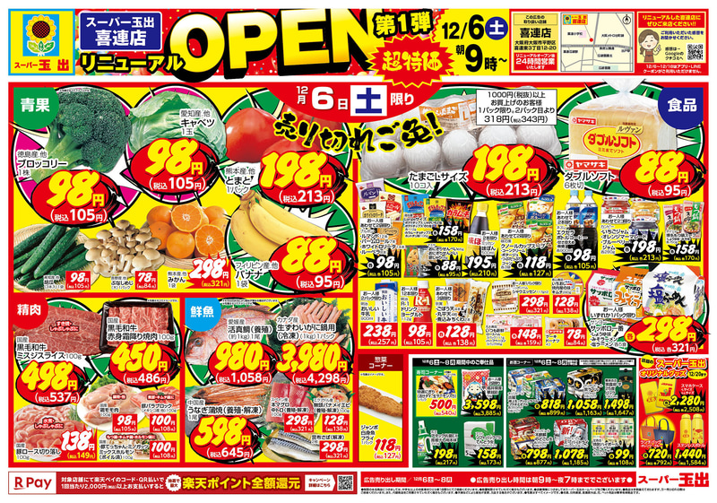 「ロースカツ重」税込343円、「ソース焼きそば」税込105円、「牛丼」税込321円、税込213円の「お楽しみ袋」も! 「スーパー玉出」喜連店が本日6日(土)リニューアルオープン~スマホケースなどの玉出グッズも20%OFF!