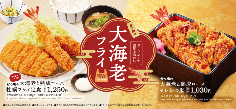 ぷりっぷりで濃厚な味わい! ゼンショーグループの「かつ庵」が「大海老フライ」を発売~大えびフライ1本+80gロース1枚の「大海老と熟成ロースタレかつ重」は税込1,030円!