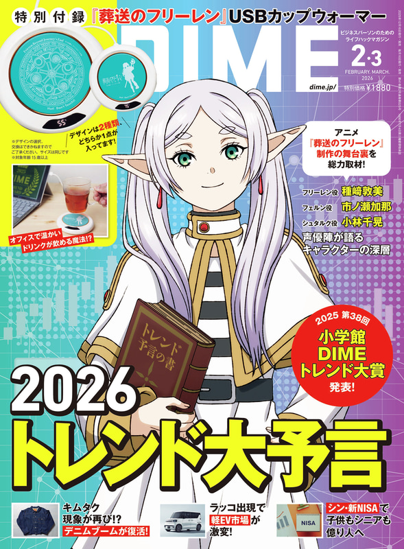 この季節に嬉しい! 3段階温度調節の“魔法”のアイテム「『葬送のフリーレン』USBカップウォーマー」が付録で税込1,880円! 「DIME」2・3月合併号が発売