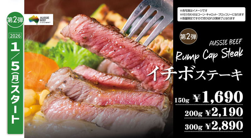 2025年に人気の「ブレードミート」と「イチボ」が復活! 「国産ヒレ」が特別価格! いきなり!ステーキが「年末年始フェア」を本日25日(木)から開催