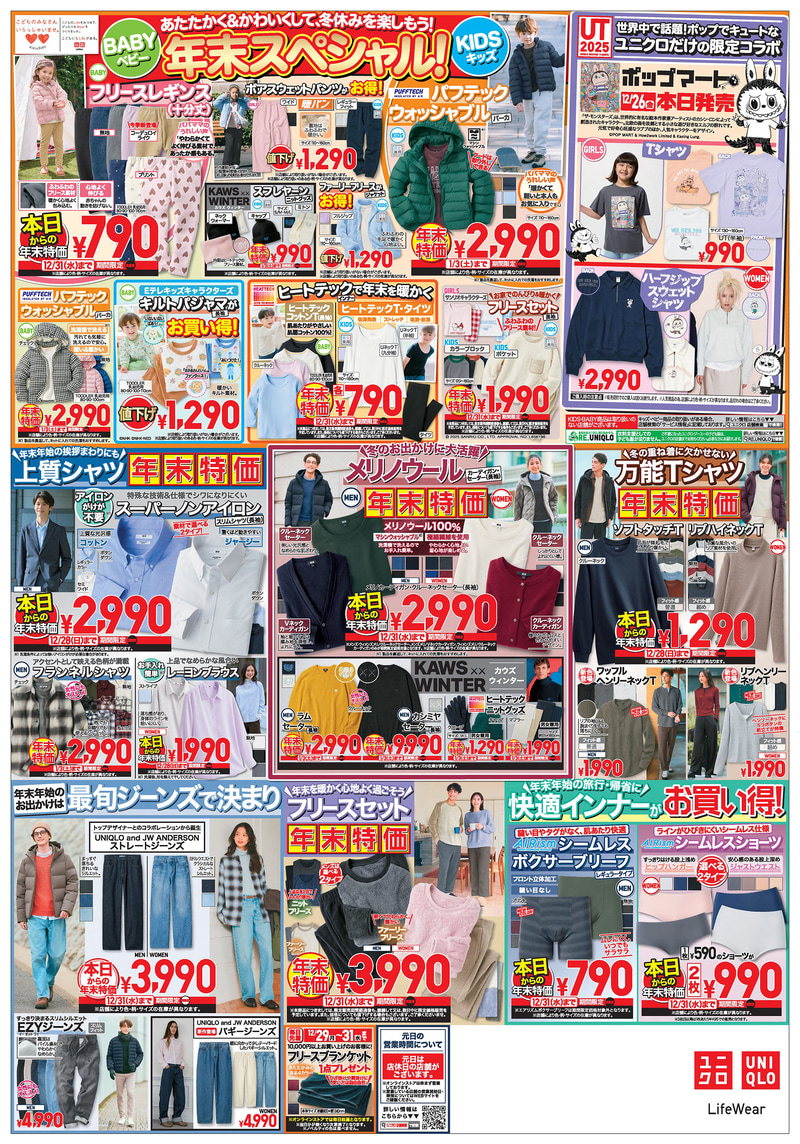 約2.25倍暖かい「超極暖ヒートテックT」税込1,990円、「スウェットシャツ」税込1,990円、「シームレスダウンショートジャケット」税込7,990円! 「ユニクロ年末祭」第2弾チラシが本日26日(金)公開