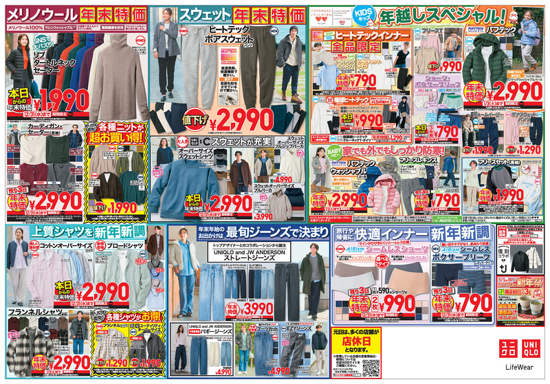 買い忘れはない? ユニクロの年末特価は本日31日(水)まで! 「フリースジャケット」税込1,990円、「パフテックコンパクトベスト」税込3,990円、「シームレスショーツ」が2枚で税込990円など