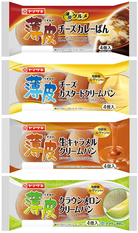 山崎製パンの「薄皮シリーズ」1月の新商品は「薄皮チーズカレーぱん」、「薄皮チーズカスタードクリームパン」、「薄皮生キャラメルクリームパン」、「薄皮クラウンメロンクリームパン」が登場