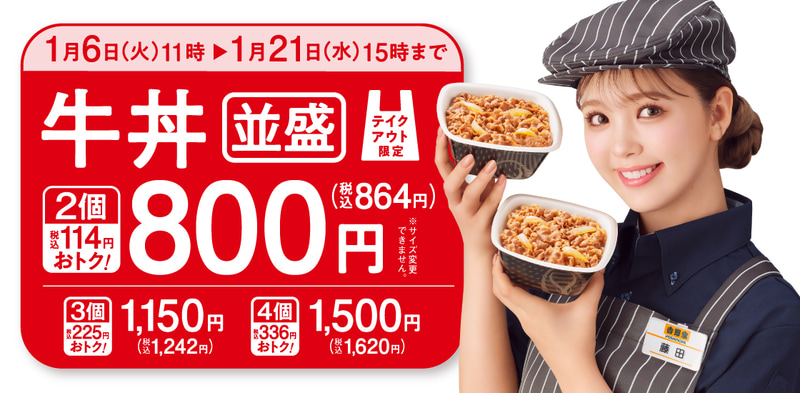 吉野家の新年スタートは牛丼並盛のテイクアウトが最大税込336円お得! 「牛丼弁当2丁800円キャンペーン」が本日6日(火)から開催