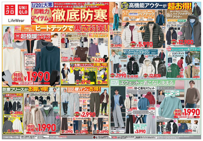 2.25倍暖かい「超極暖ヒートテックT」税込1,990円、「メリノリブタートルネックセーター」税込1,990円、「スウェットシャツ」税込1,990円! ユニクロが「即戦力アイテムで徹底防寒」チラシを本日16日(金)公開