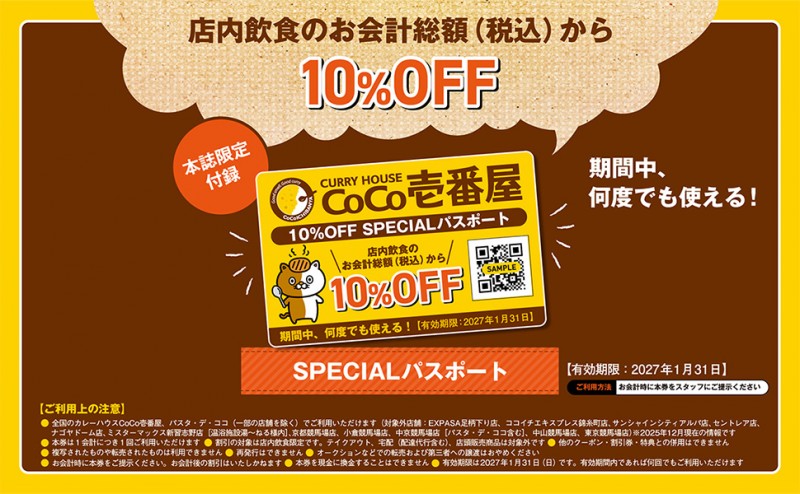 ココイチが最大1年以上10%OFFのSPECIALパスポート付きで税込1,100円! 「CURRY HOUSE CoCo壱番屋 FAN BOOK やっぱりココイチ!」が創業日の本日17日(土)発売~レインボー・ジャンボたかお、櫻坂46 井上梨名らのインタビューも