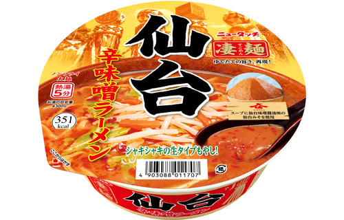 人気の「ニュータッチ 凄麺 仙台辛味噌ラーメン」が7年ぶりにリニューアル! 唐辛子追加で旨辛さがアップした本日19日(月)発売~シャキシャキの生タイプもやしがおいしい