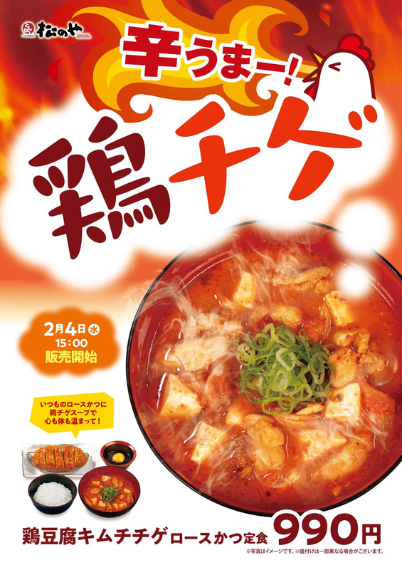 松屋の冬の風物詩「キムチチゲ」が松のやにも初登場! サクッとロースかつと楽しむ、寒い季節にぴったりの冬メニュー「鶏豆腐キムチチゲ ロースかつ定食」が発売