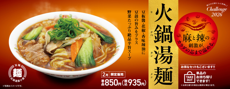 麻と辣の刺激がカラダの芯まで温め、白菜やチンゲン菜などの新鮮野菜もたっぷり! 餃子の王将が2月限定「火鍋湯麺」を本日1日(日)発売